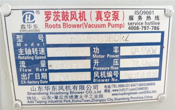 重新采購羅茨風機時,對羅茨鼓風機有不是很了解,把這個銘牌拍下照片,發(fā)給生產(chǎn)廠家,廠家就知道是哪個型號的了,提供這個銘牌信息之后,我們可以不用管其他的選型問題了,等著廠家給我們報價即可。