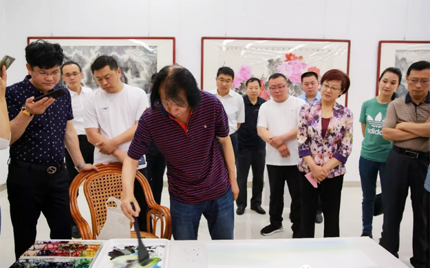 展覽中,何路教授現(xiàn)場作畫,為共和國70華誕獻(xiàn)禮,吸引了眾多參展者前來觀看,并贏得廣大書畫愛好者的一致稱贊。